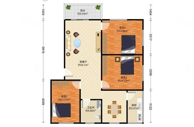 3室2厅1卫